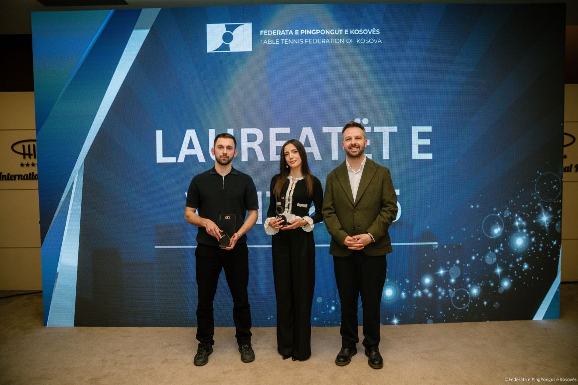 Federata e Pingpongut e Kosovës organizoi ceremoninë solemne “Laureatët e Vitit 2025”, ku u vlerësuan sportistët, trajnerët, gjyqtarët, klubet, institucionet dhe partnerët që shënuan vitin me paraqitje dhe kontribut të jashtëzakonshëm në pingpongun kosovar.
